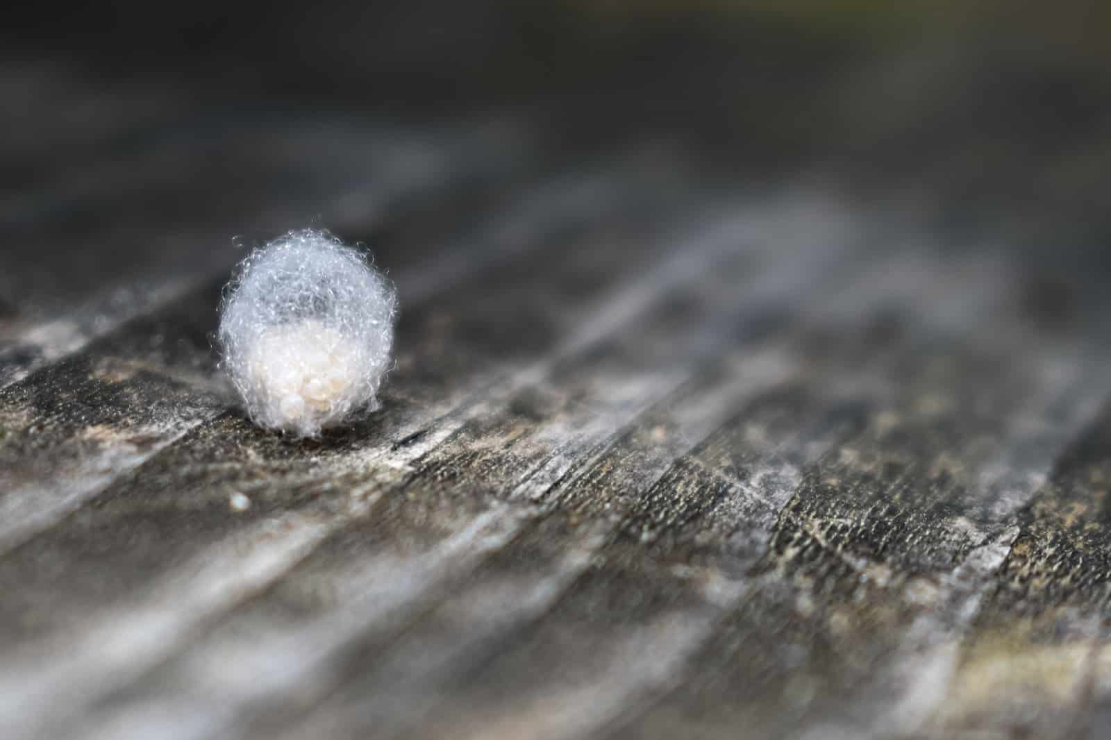 Generally speaking, they look like a small, whitish, fuzzy bubble attached to a wall, furniture, or corner. They can come in different sizes, shapes, and colors (though usually they are white or cream-colored, since they are loosely woven from the spiderโs silk). Most of the time, theyโre round or oblong. Some are smooth, but some can have little spikes or bumps. Usually, egg sacs are about as big as the spider that made it.